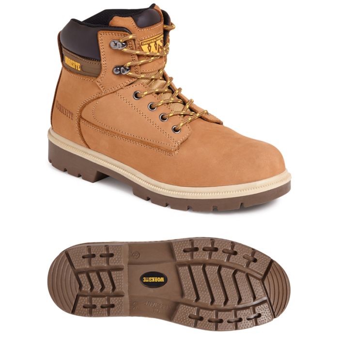 Wheat nubuck leather safety boot. Steel toe cap and steel midsole protection. Padded collar and tongue for added comfort. Dual density polyurethane outsole. Anti-static. A traditional style safety boot ideal for many types of industry.